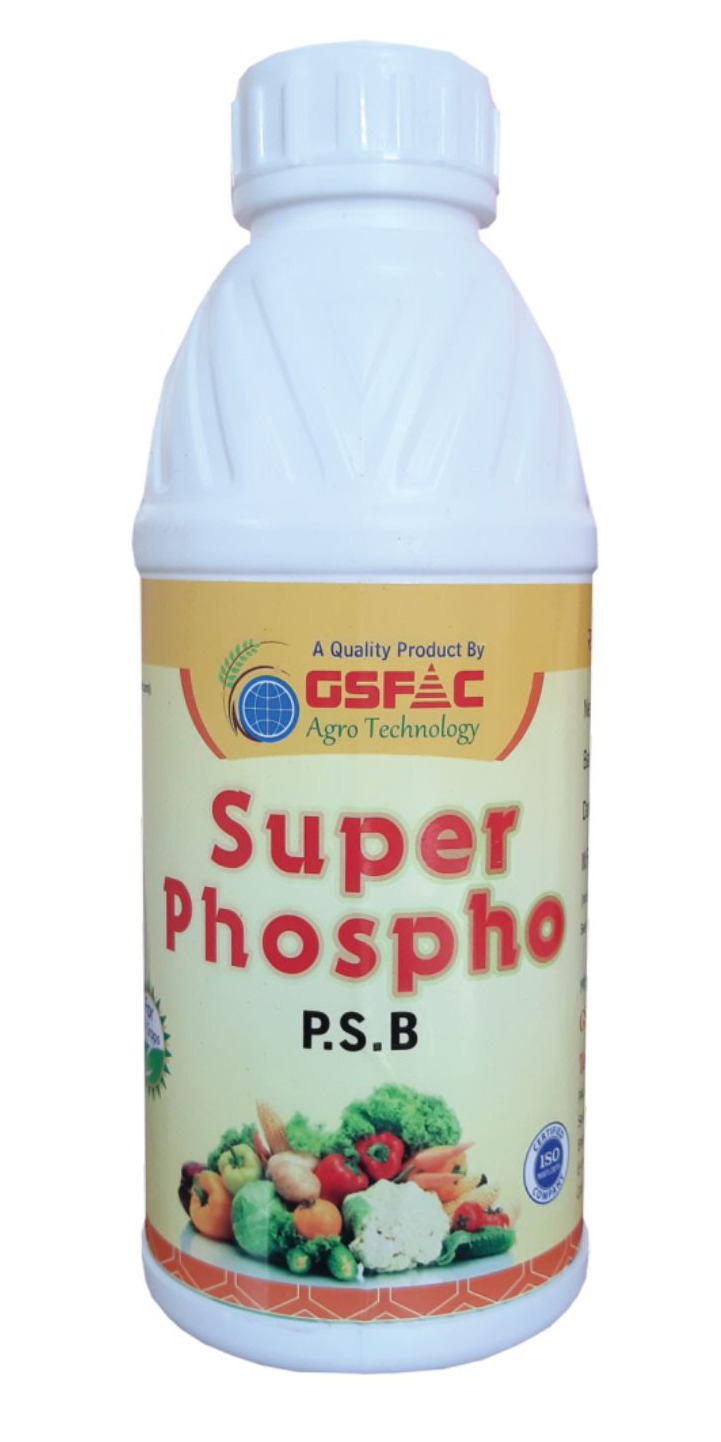 सुपर फॉस्पो (पी.एस.बी.): स्फुरद हा पिकाच्या मुख्य अन्नद्रव्यांपैकी असणारा एक महत्वाचा मुलद्रव्य असून तो फॉस्पेट स्वरुपात टाकला जातो. जमिनीतील व खतांमधील अविद्राव्य स्पूरद पिकांना वापरणे अशक्य असते. रासायनिक खत म्हणून टाकलेल्या स्फुरदाची बरीचशी मात्रा ही मातीला चिटकून बसते व पिकास उपलब्ध होत नाही. स्फुरद विरघळवणारे जीवाणू हे अविद्राव्य Super स्फुरदाचे विद्राव्य स्वरुपात रुपांतर करतात. त्यामुळे रोपांची वाढ झपाट्याने होते. बियांची उगवण Pho Phosph लवकर व जास्त प्रमाणात होते. पिकाची प्रत सुधारुन उत्पादनात वाढ होते. स्फुरद विरघळवणारे जिवाणू ऑरगॅनिक अॅसिडची निर्मिती करतात. त्यामुळे खताच्या मात्रेपैकी ५०% स्पुरद खताची बचत होते. प्रमाण : एकरी २ लि. ड्रिपमधून देणे. पॅकिंग: १ व ५ मध्ये उपलब्ध